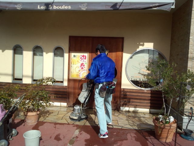 新年のオープンを綺麗な店でお客様を迎える為、洗い屋さんに綺麗にしてもらっています。