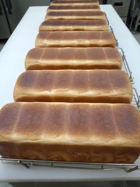 店はまだ開けていませんが、レストランにパンを卸している為、レストランと自宅用にパンを焼いています。 パン作りは生地を作ってから、発酵して、休ませてを繰り返し、焼き上げます。 さらに、さましてからスライスしますので、少し焼くだけでも一日がかりです。